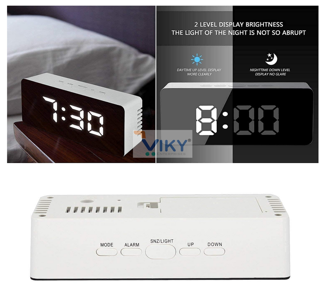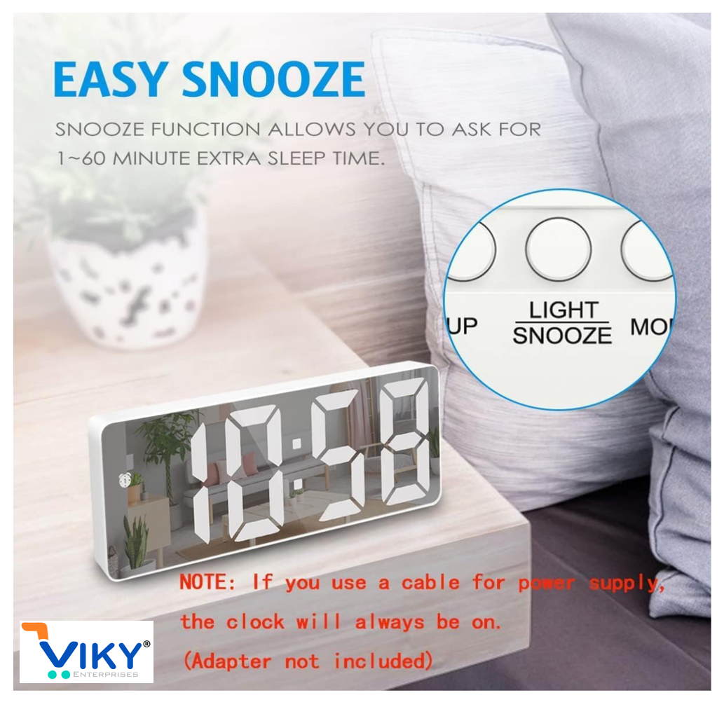 Name: Digital Alarm Clock, Table Clock for Students, Office, Home, Bedroom, Corporate with Automatic Sensor, Smart Night Light, Date & Temperature (Mirror-White)
