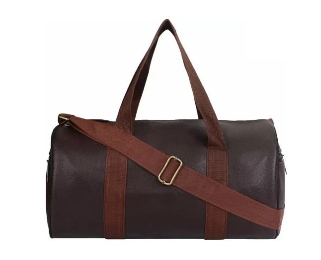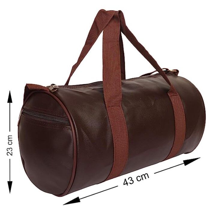 Name : VIKY PU Leather Gym Duffel Bag, Dark Brown Plain